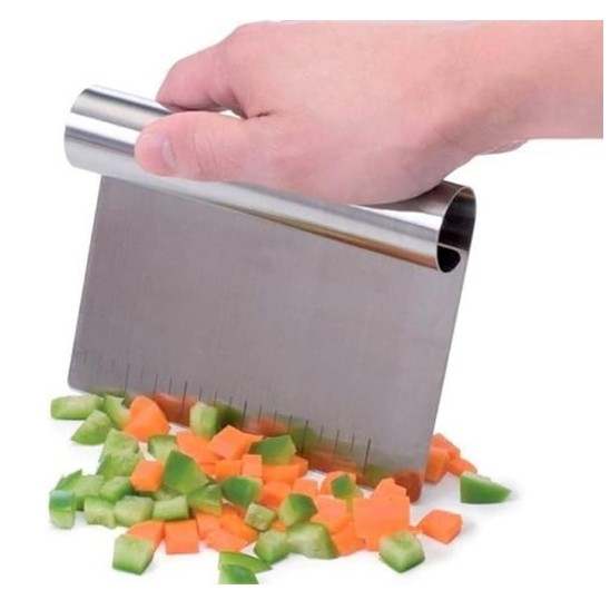 Um daqueles utensílios simples que surpreendem. Serve para cortar, raspar, organizar ingredientes e dividir massas com facilidade.