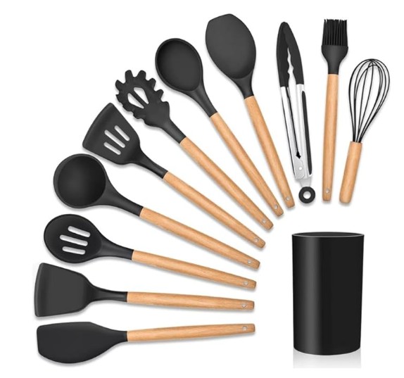 3. Kit de Utensílios de Silicone com Cabo de Madeira