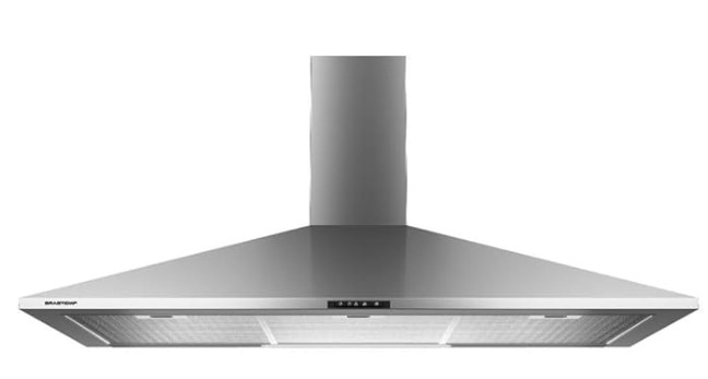 Coifa de parede Brastemp 90 cm em inox, formato piramidal