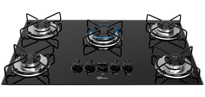 🔹 Cooktop a Gás 5 Bocas Fischer – Mesa de Vidro