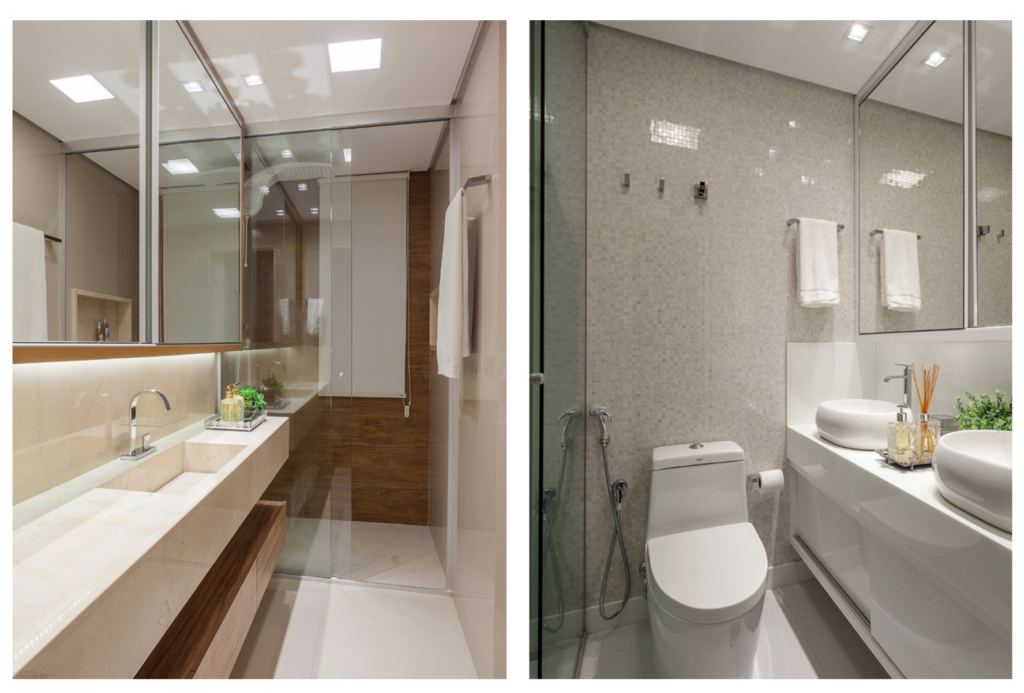 Em ambos os casos, a marcenaria foi planejada para resistência à umidade e durabilidade.