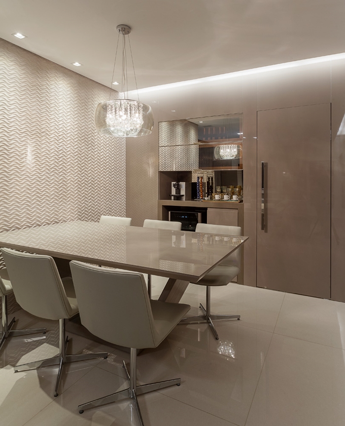 Sala de jantar planejada com marcenaria sob medida em MDF Gianduia Cristallo – projeto residencial em Lourdes, BH.